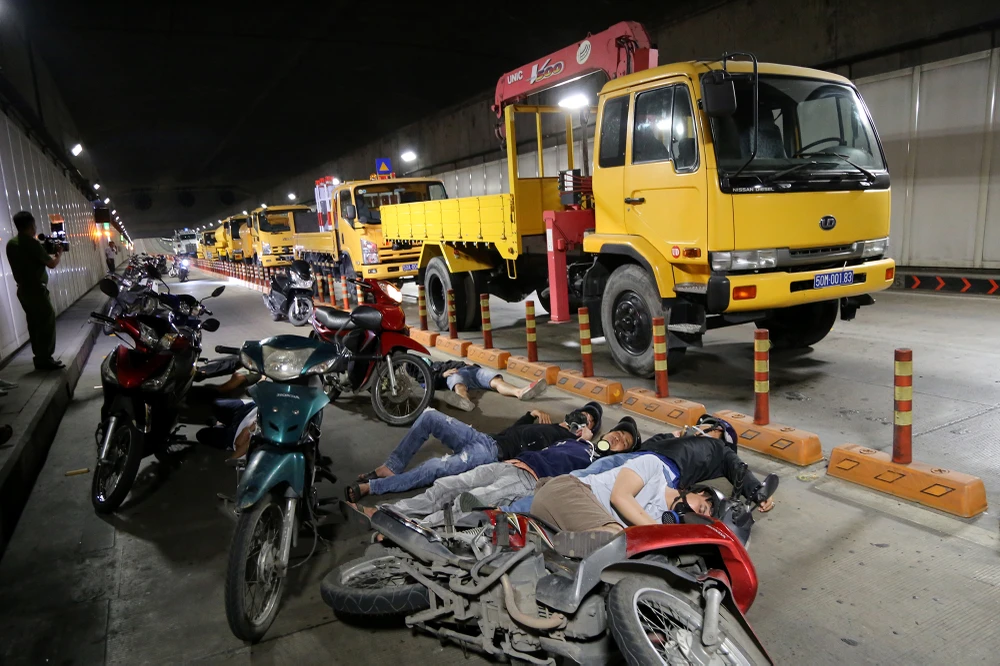 Với khoảng 40 người gặp tai nạn trong đường hầm sông Sài Gòn thì có 10 người bị thương. Trong đó có ba người trên xe tải chở hàng hóa 2 tấn không di chuyển được, ba người trên xe tải khác, bốn người trên xe máy bị thương có thể di chuyển được.