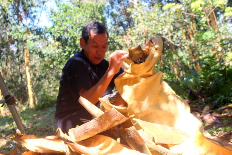 “Năm nay giá quế lên cao nên gia đình tôi thu được cũng trên dưới trăm triệu đồng từ 150 gốc quế đã 30 năm” ông Nguyễn Kim Bằng (65 tuổi, trú thôn 3, xã Tiên Hiệp, huyện Tiên Phước) nói.