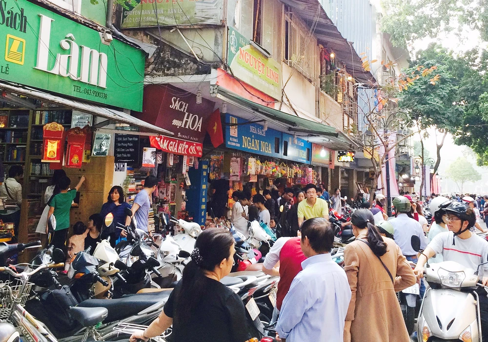 Phố sách truyền thống tại phố Đinh Lễ, cách Phố sách xuân Bính Thân 2016 – Lê Thạch chừng 300m cũng tấp nập người mua.