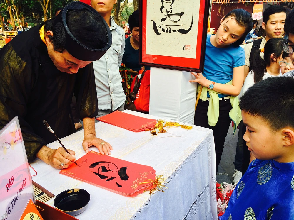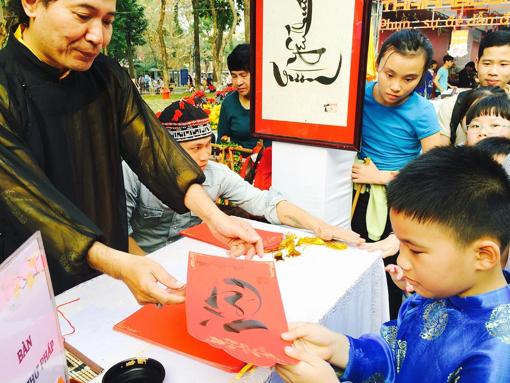 Xin chữ ở gian hàng thư pháp miễn phí tại phố sách