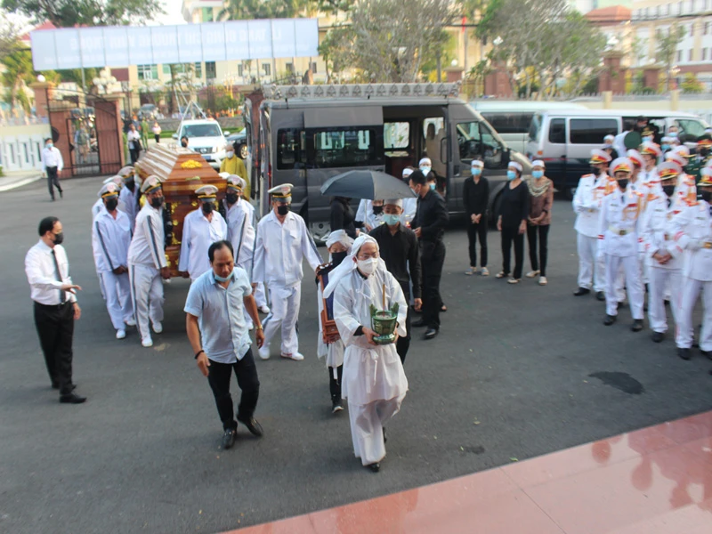 Sau khi tổ chức lễ viếng tại nhà riêng ở huyện Giồng Trôm, khoảng 5 giờ 40 sáng 21-2, linh cữu nguyên Phó thủ tướng Trương Vĩnh Trọng đã được đưa về Hội trường lớn UBND tỉnh Bến Tre để tổ chức tang lễ ông theo nghi thức lễ tang cấp Nhà nước.