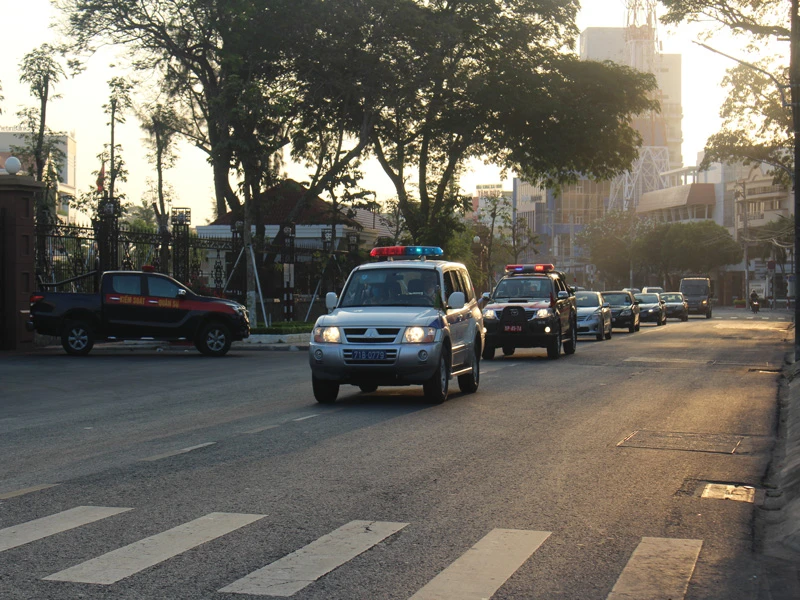 Đoàn xe di quan trên đường