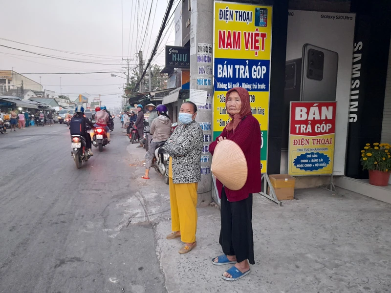 Người dân đứng chờ đoàn xe chở linh cữu ông Trương Vĩnh Trọng đi qua chào tiễn biệt ông