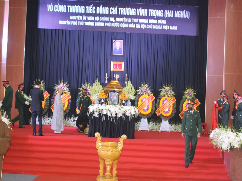 Lễ viếng ông Trương Vĩnh Trọng sẽ diễn ra vào lúc 8 giờ hôm nay (21-2) tại Hội trường lớn theo nghi thức lễ tang cấp Nhà nước.