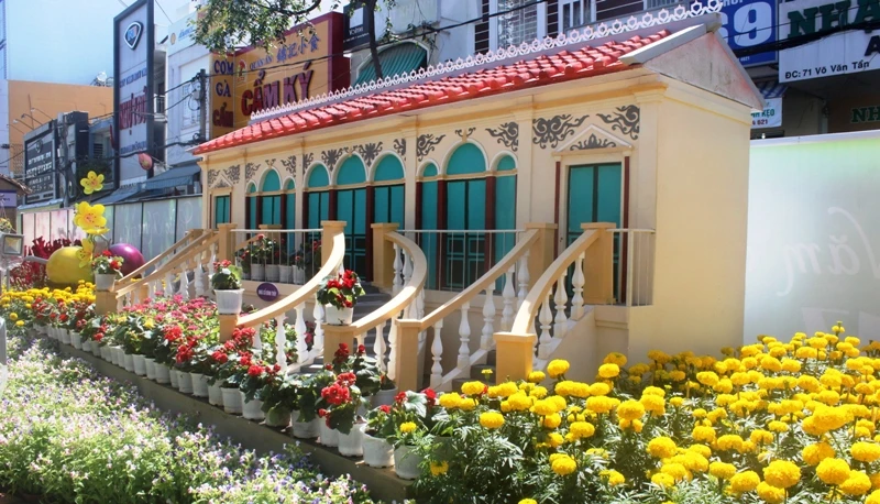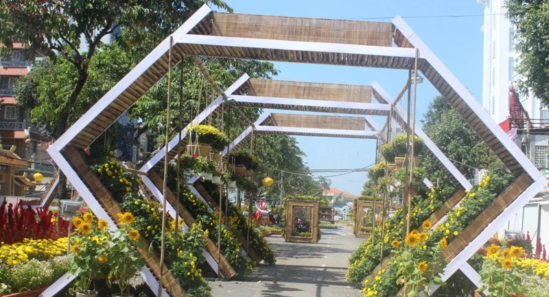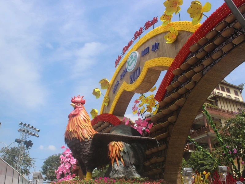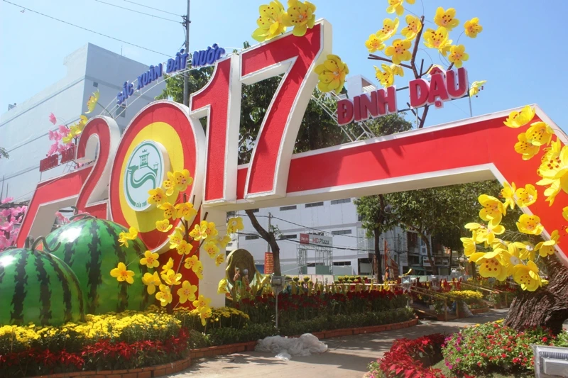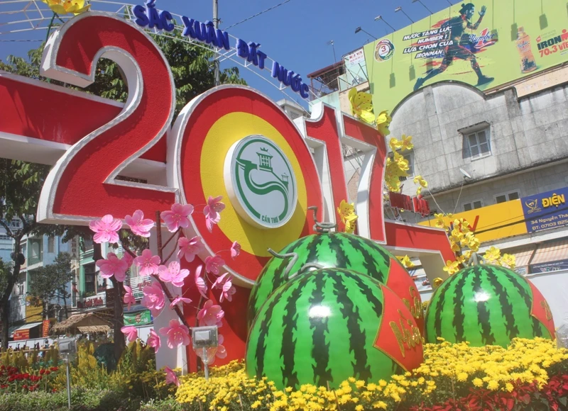 Đường hoa xuân Cần Thơ Đinh Dậu 2017 được bố trí và sắp đặt tại đường Võ Văn Tần –Nguyễn Thái Học, phường Tân An, quận Ninh Kiều có chiều dài 310 m được kết hợp bởi 80.000 giỏ hoa tươi các loại cùng 40 – 50 mô hình, tiểu cảnh.