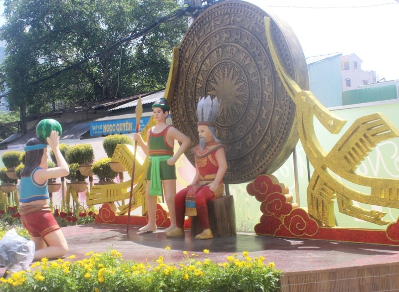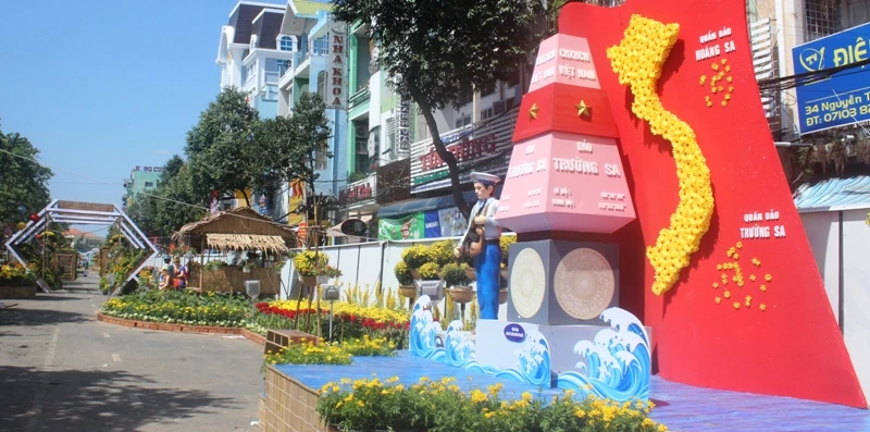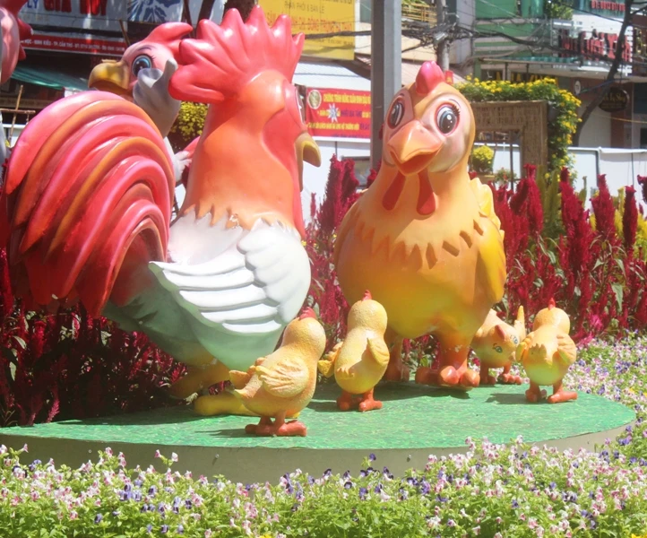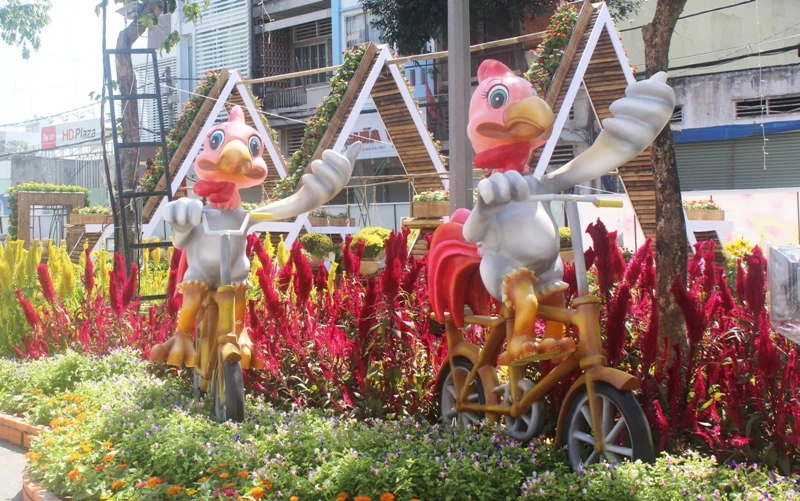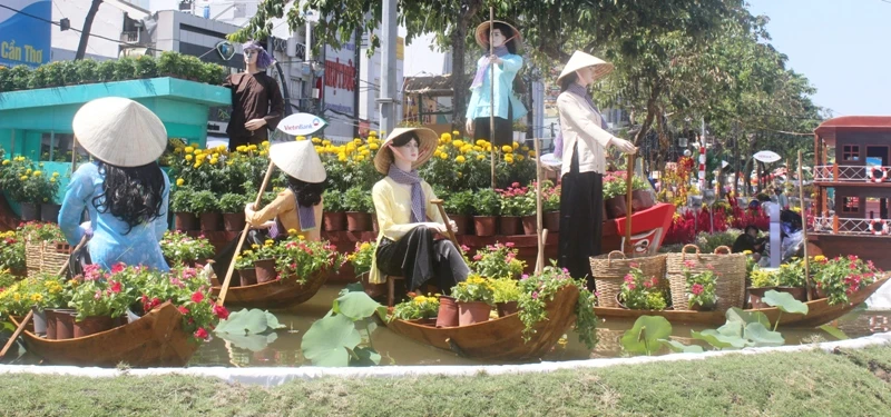 Đường hoa được phân ra các phân đoạn theo chủ đề như: “Sắc màu xuân đất nước”, Cần Thơ phát triển, “Gà và xuân mới”,, “Cổ tích biển”… Đặc biệt là cụm mô hình và hình ảnh gia đình nhà gà, chú gà đạp xe đạp…