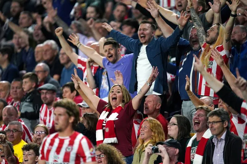 Fan Brentford đầy hưng phấn khi đánh bại ông lớn Arsenal ở trận ra quân đầu.
