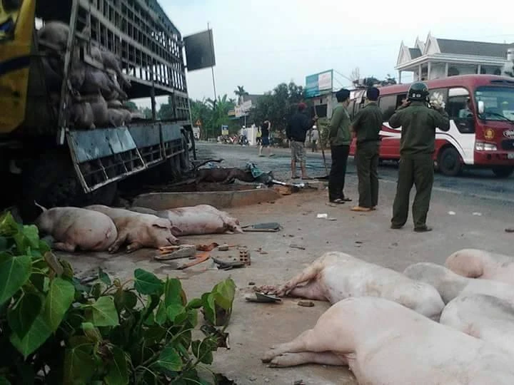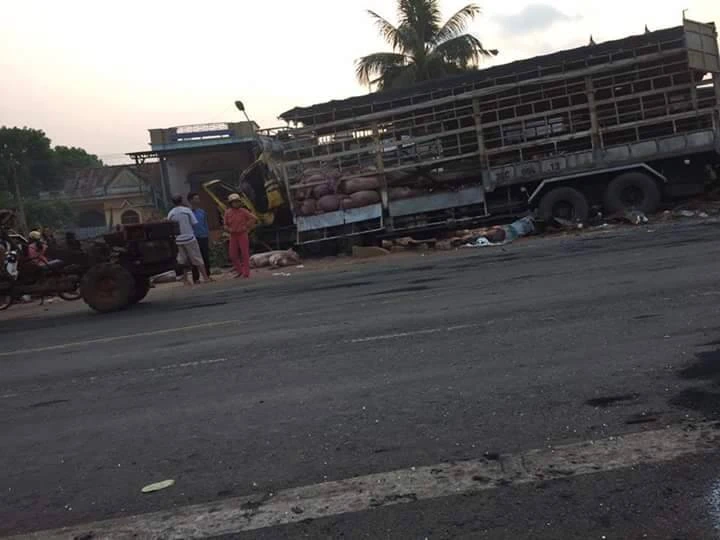 Như đã đưa tin, vụ tai nạn xảy ra trên địa bàn xã EaHleo, EaHleo, Đắk Lắk vào khoảng 2 giờ sáng, xe ô tô tải chở heo chạy hướng Đắk Lắk - Gia Lai tông phải xe khách đang đi từ trong hẻm ra quốc lộ 14.