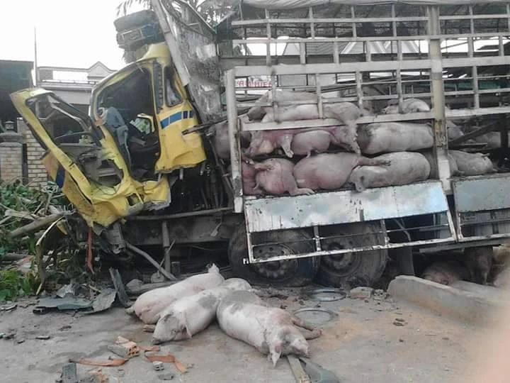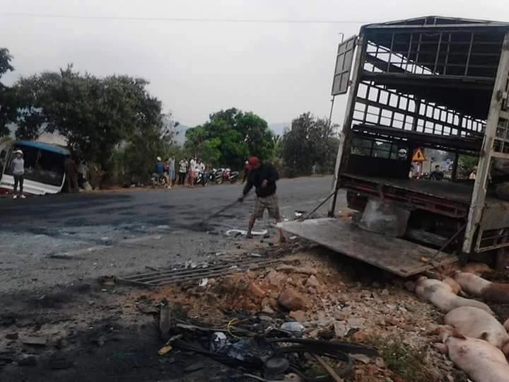 Cú tông mạnh làm xe khách bẹp đầu và lao vào hàng rào khiến tài xế xe tải tử vong tại chỗ, bốn người bị thương được đưa đi cấp cứu tại BV Đa khoa huyện EaHleo. Ngoài ra gần 100 con heo trên xe tải cũng nằm chết la liệt.