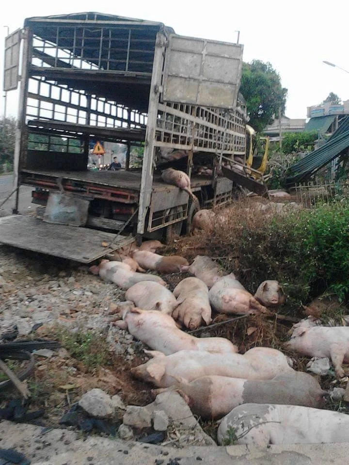 Gần 100 con heo nằm la liệt (Ảnh: CTV)