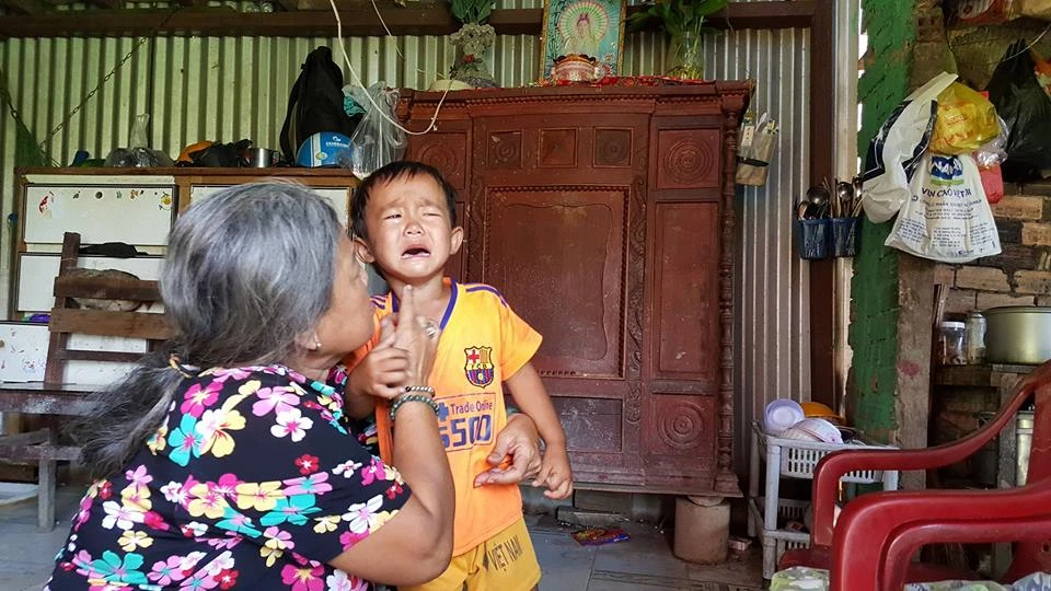 Cậu bé này rất nhút nhát, khóc òa khi thấy người lạ.