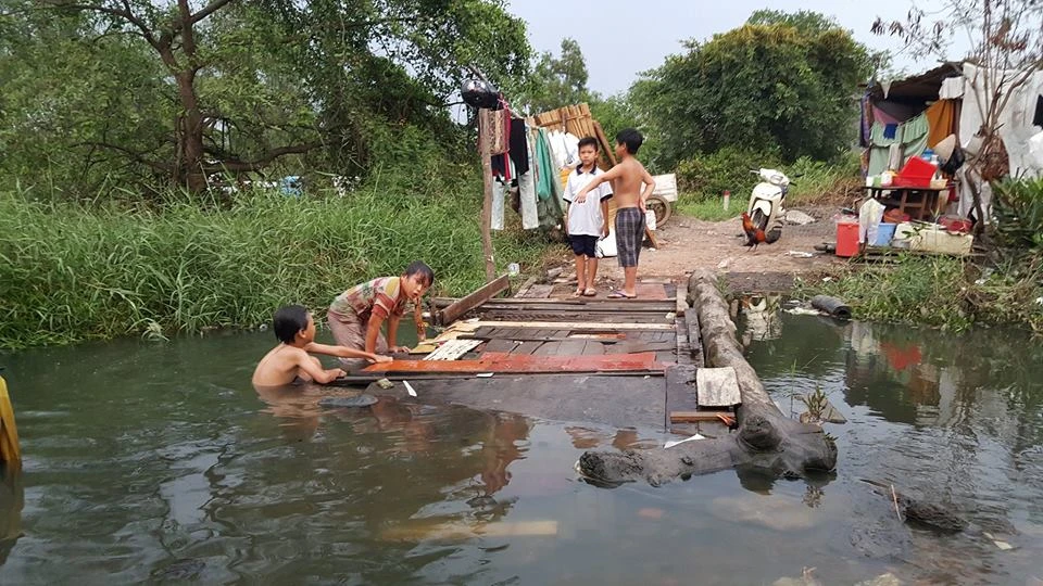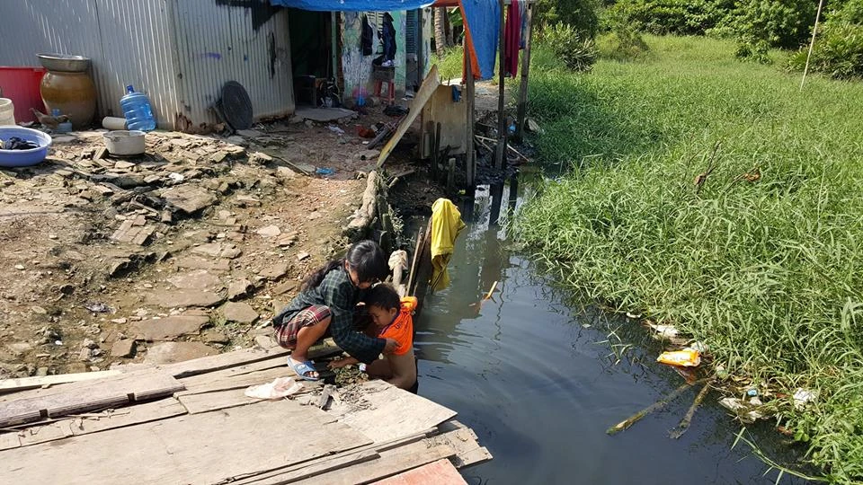 Nước rút, con kênh đen bốc mùi hôi. Nhưng đây là nguồn nước duy nhất để tắm giặt. Chỉ có nước nấu ăn mới được mua mang từ bên ngoài vào.