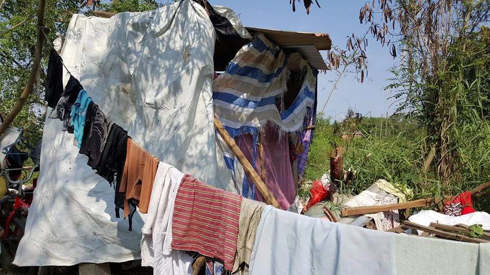 Căn nhà tạm không đủ chỗ ngủ, phải quây thêm căn chòi này làm chỗ ngủ. Ngay phía sau căn chòi này là ngôi mộ cũ