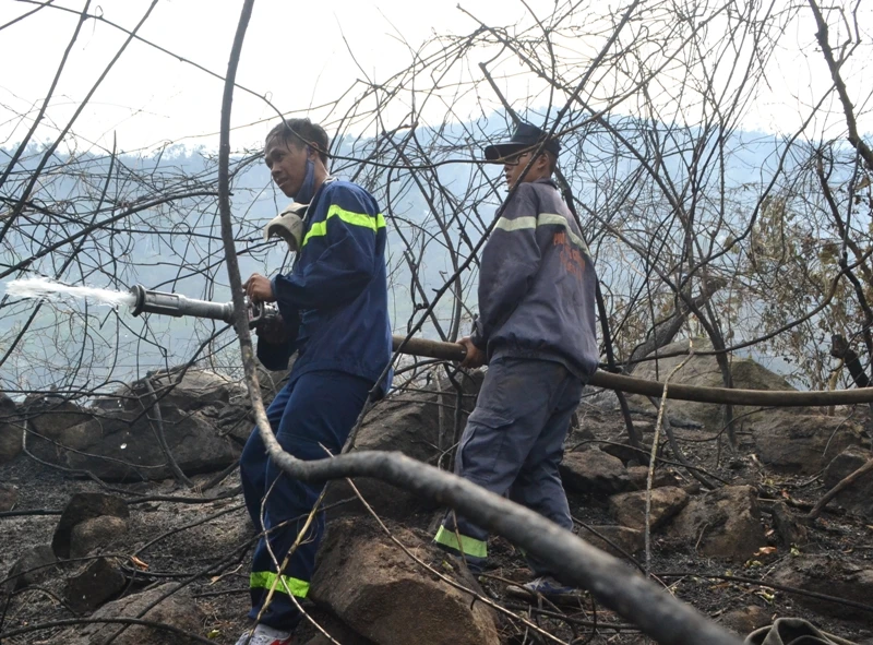 Vượt đường đèo, núi đá lởm chởm, mỗi người còn phải vác trên vai ống nước, máy khò để dập lửa. Dưới sức lửa táp ra hầm hập, mỗi người chỉ trụ được khoảng vài phút lại phải lùi ra tiếp nước.