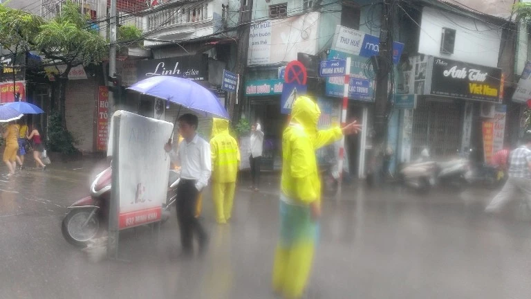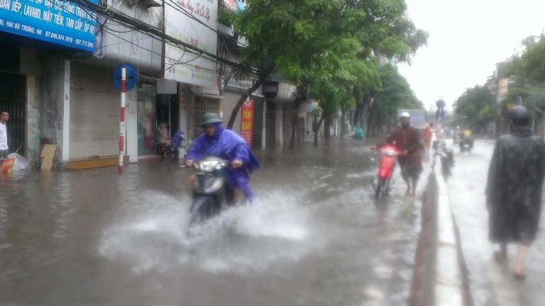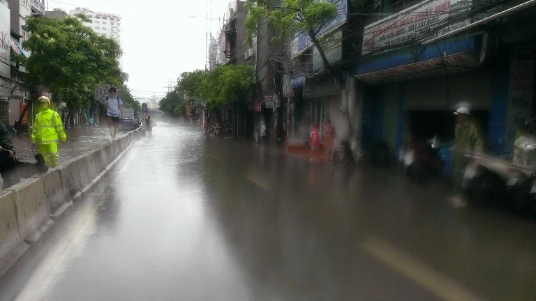 Tuyến đường Minh Khai, Hai Bà Trưng bị ngập nặng khiến nhiều phương tiện chết máy.