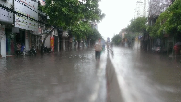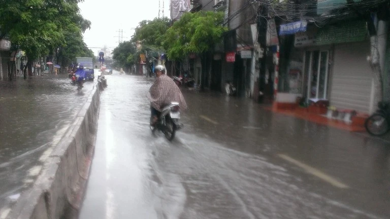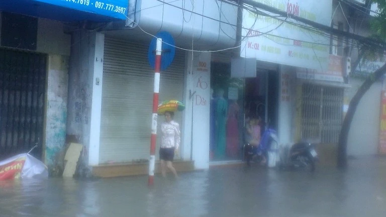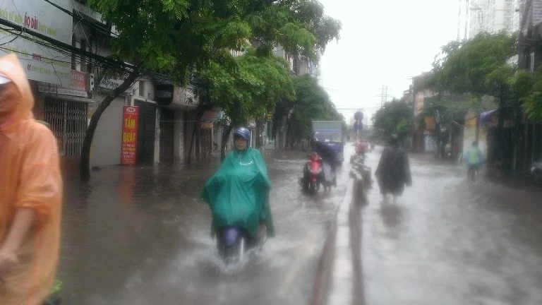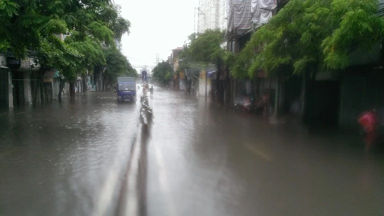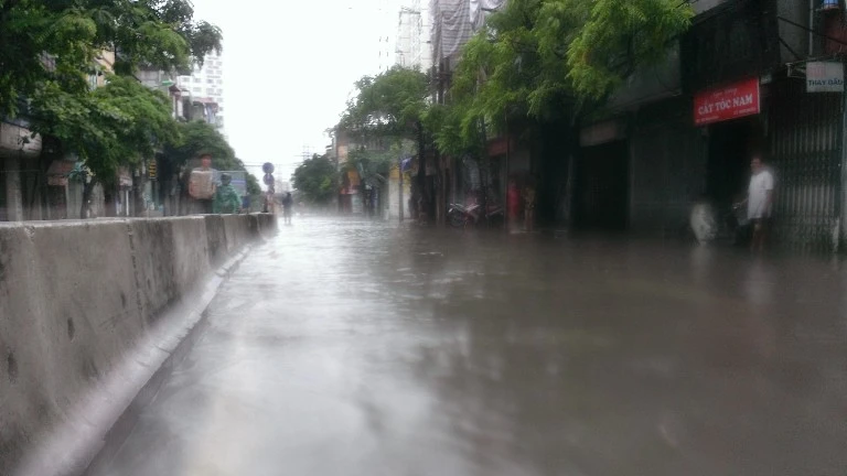 Đường ngập trắng nước không phương tiện giao thông nào dám "mạo hiểm"