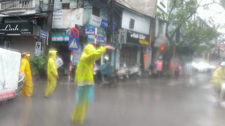 CSGT phân luồng xe theo hướng khác tránh tuyến đường bị ngập nặng
