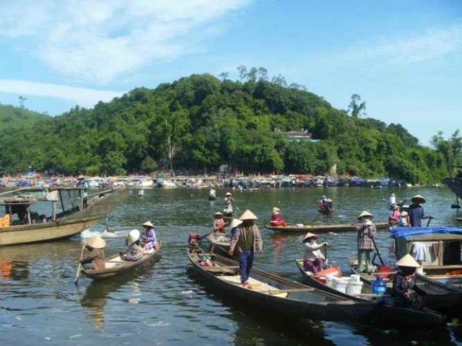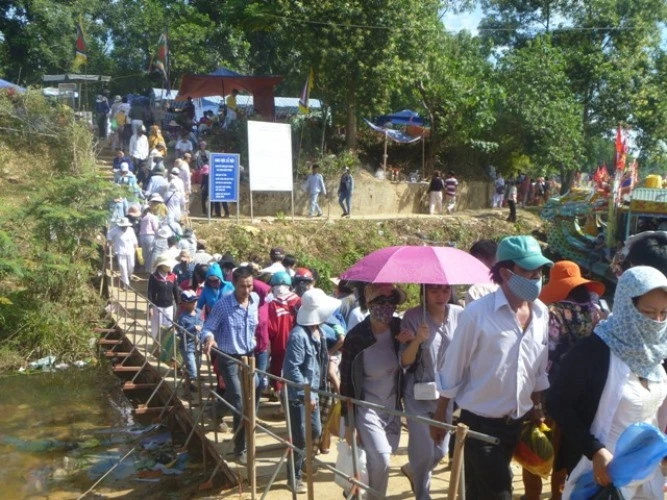 Người dân tập trung về điện rất đông, tàu thuyền đậu san sát kín mặt sông