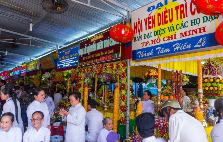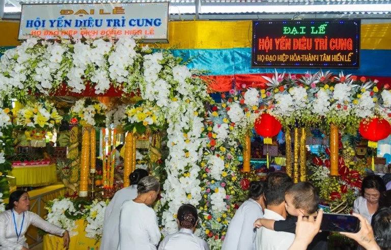 Hội Yến đặc biệt đông đúc và nhộn nhịp trong đêm 14 và 15 âm lịch. Tòa thánh Cao Đài trưa 14-8 âm lịch.