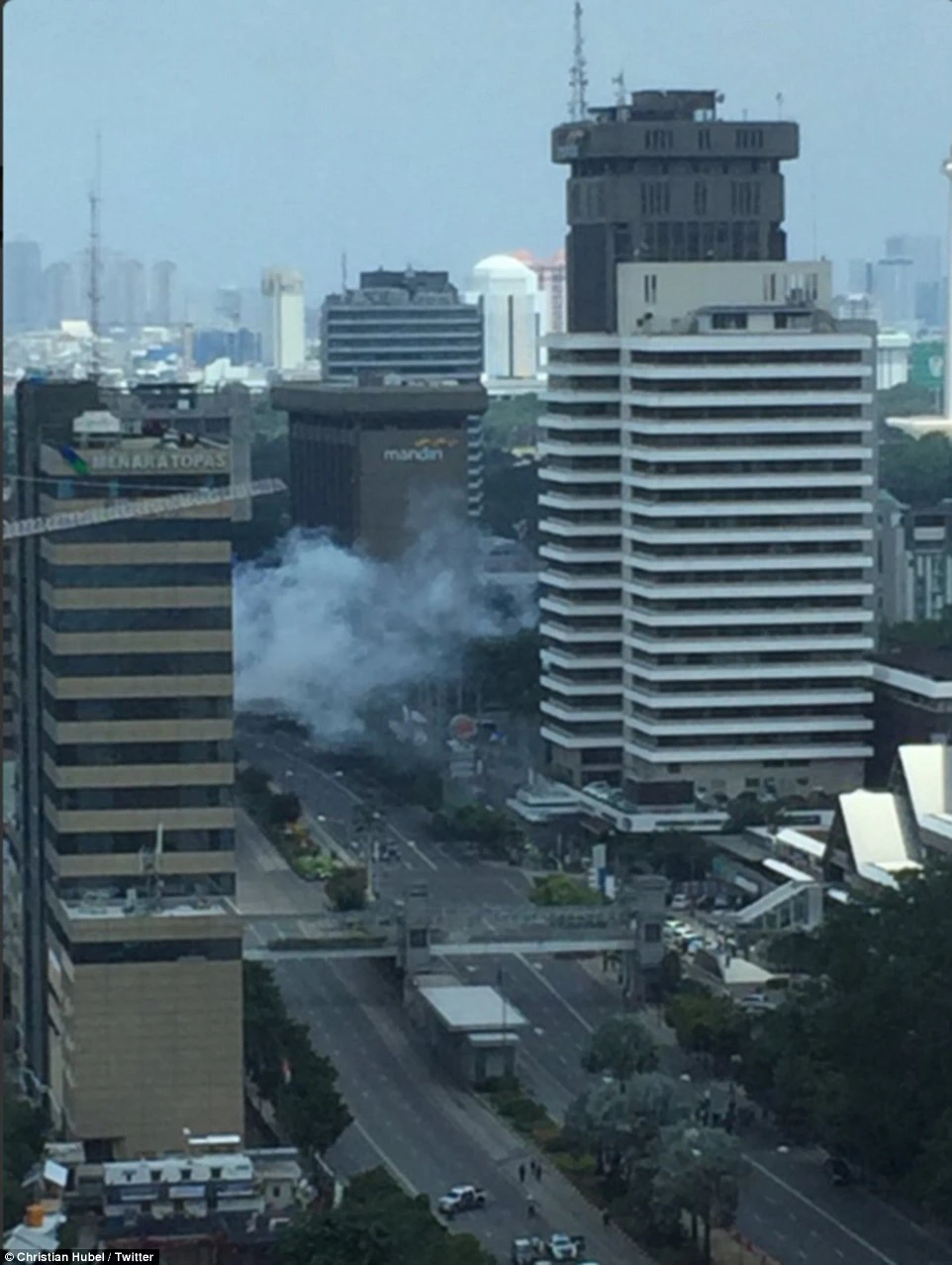 Vụ nổ làm chấn động Indonesia, hàng trăm người dân tụ tập sau vụ nổ. (Nguồn: Daily Mail)