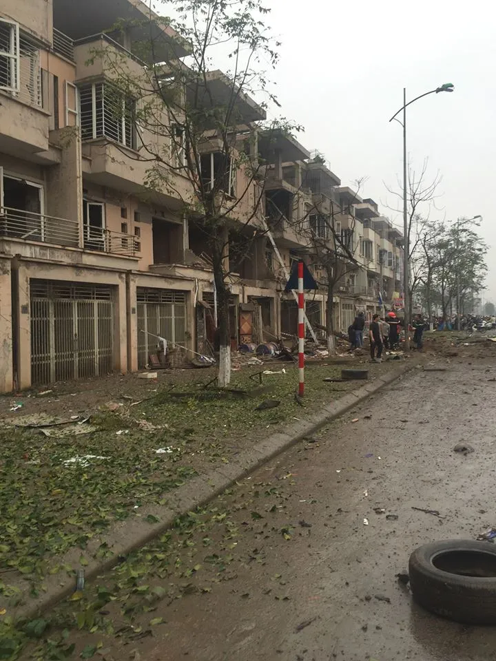Nhà đối diện, cách vụ nổ 50 m, cửa bị đánh sập