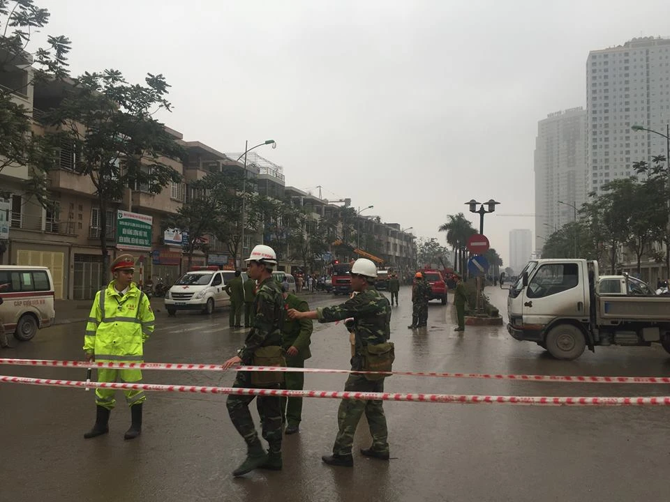 Lực lượng chức năng phong tỏa để làm công tác khám nghiệm và cứu hộ.