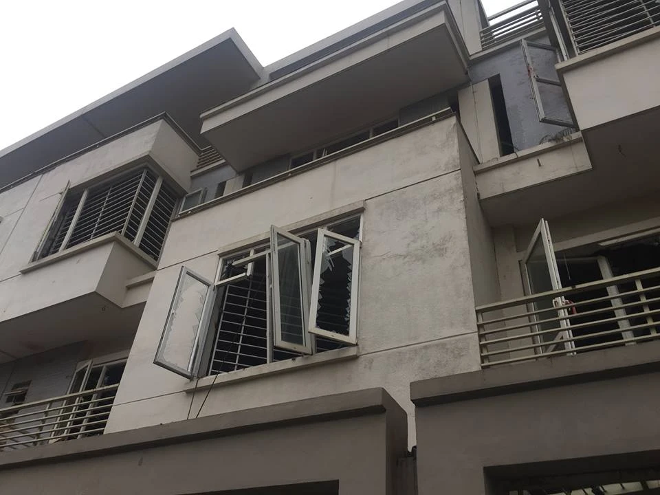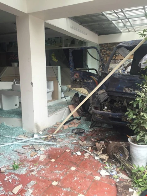 Căn nhà gần đấy bị sức ép của vụ nổ làm vỡ kính
