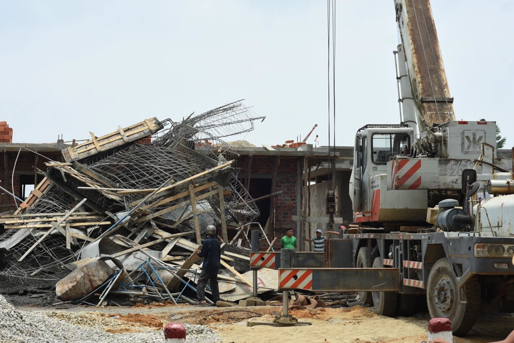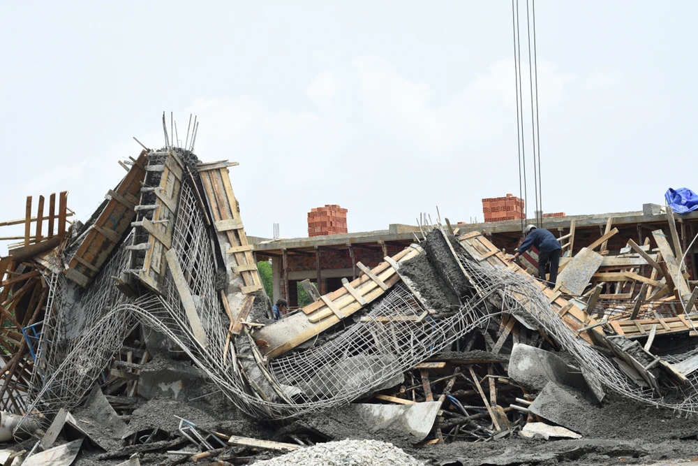 Vụ sập công trình khi công nhân đang tiến hành thi công nên nhiều công nhân bị mắc kẹt bên trong đống đổ nát.