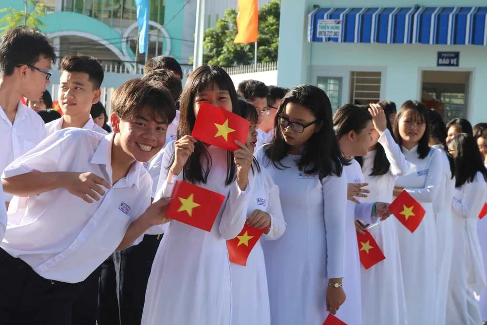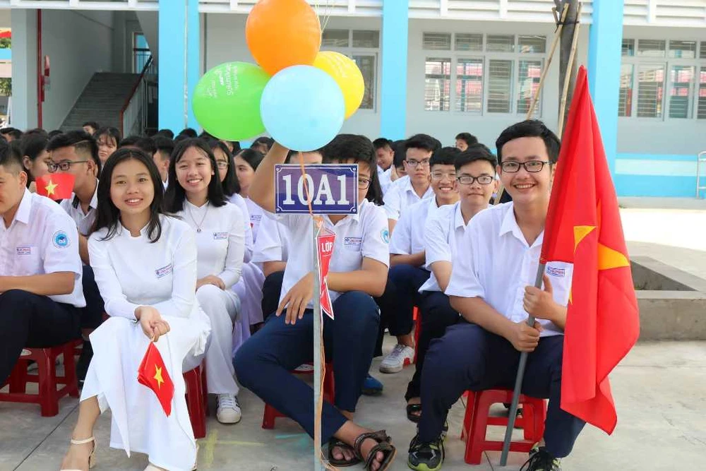 Học sinh Trường THPT Linh Trung, quận Thủ Đức rạng rỡ trong lễ khai giảng đồng thời là lễ khánh thành trường học.