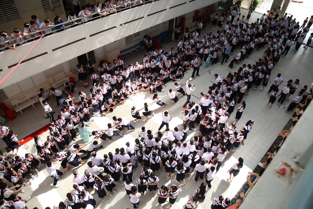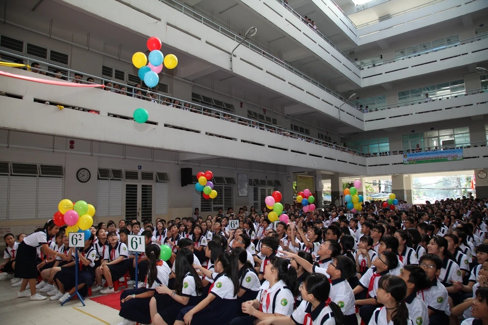 Học sinh Trường THCS Lữ Gia, quận 11 thích thú với màn thả bóng bay