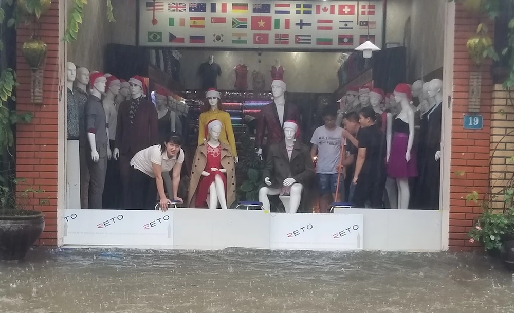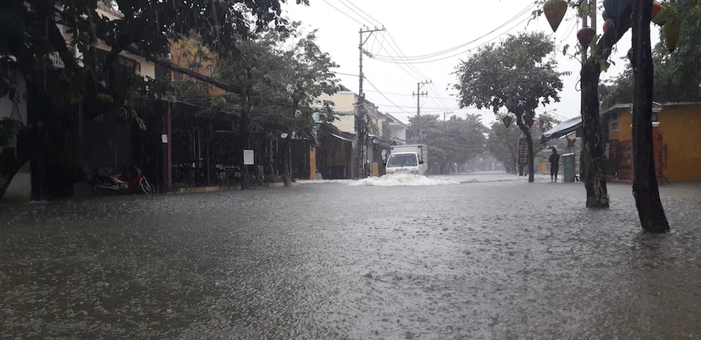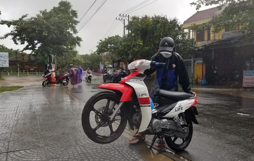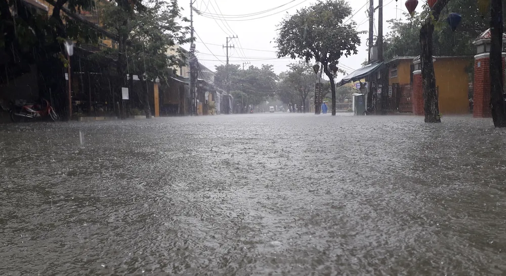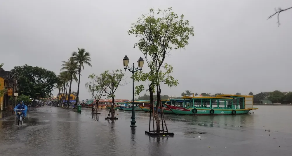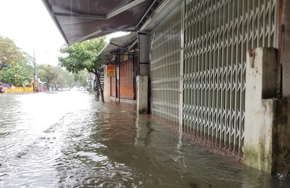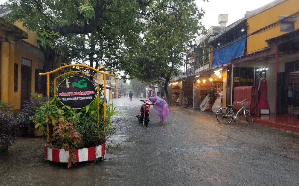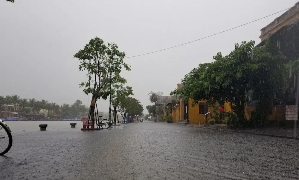 Rạng sáng 9-12, Quảng Nam có mưa lớn. Sau khi tạnh khoảng 1 tiếng, trời mưa trở lại khiến nhiều đường phố ở Hội An ngập sâu trong nước. Đến 12 giờ 30, mưa vẫn chưa tạnh khiến các phương tiện tham gia giao thông gặp nhiều khó khăn.
