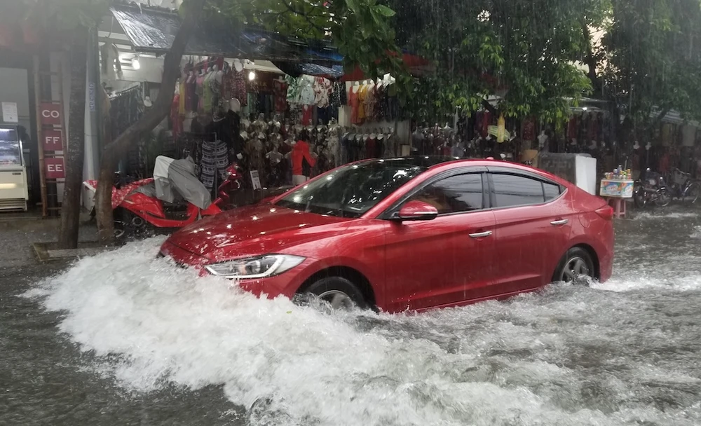 Đường Hai Bà Trưng, nước ngập hơn nửa bánh xe