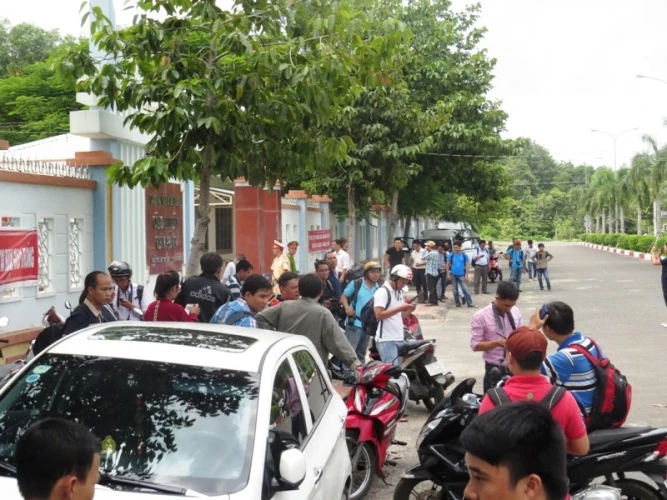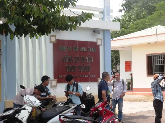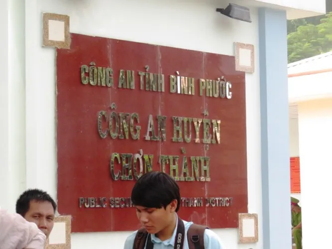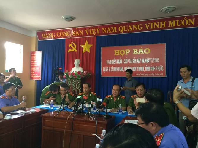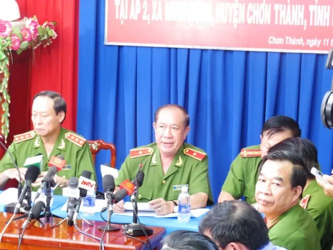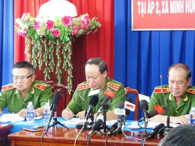 Cuộc họp báo diễn ra ở hội trường công an huyện Chơn Thành, Bình Phước.