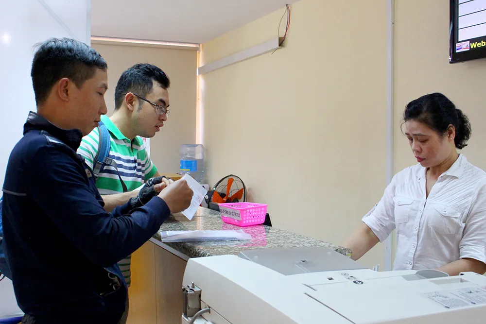 Sau khi điền thông tin trên mạng, người dân tiến đến quầy lấy số thứ tự...