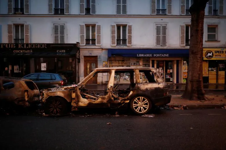 Xe ô tô bị đốt cháy, phá hủy, nằm ngổn ngang trên phố. Ảnh: REUTERS