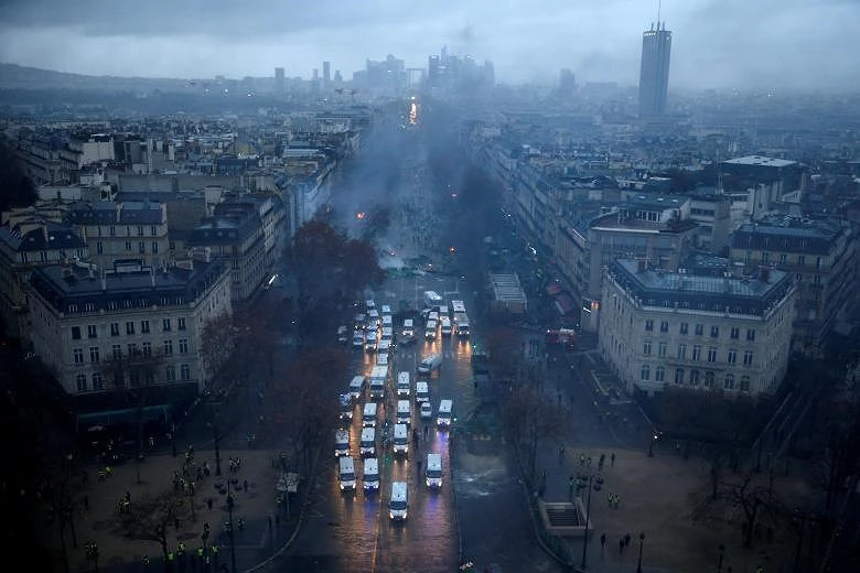 Khải Hoàn Môn lịch sử, oai hùng bỗng chốc chìm trong khói lửa, bạo động. Ảnh: REUTERS