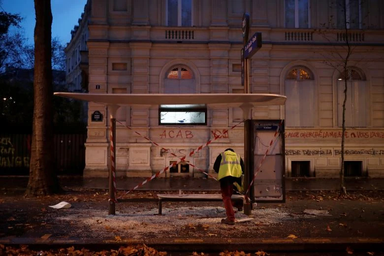 Khắp xung quanh, mọi ngóc ngách của thủ đô Paris đều bị những kẻ quấy rối vẽ bậy, đập phá, thách thức cảnh sát. Ảnh: REUTERS