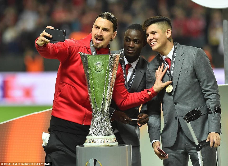 Ibrahimovic, Rojo tự sướng bên chiếc cúp.