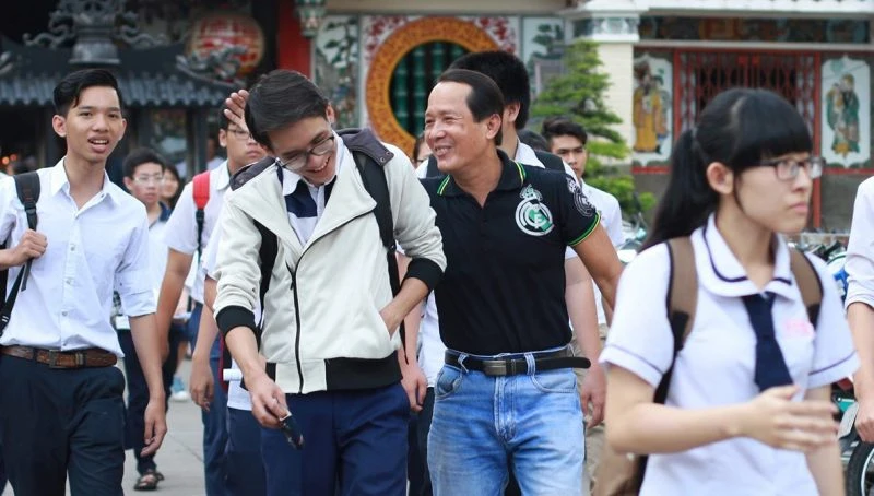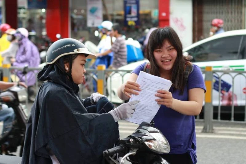 Nụ cười sau giờ thi Anh văn tại điểm trường THCS Trần Bội Cơ