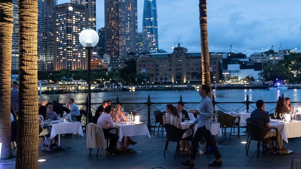 Một số đôi vợ chồng ở TP Sydney (Úc) chọn ăn tối ở khu cảng Circular Quay trong tối 31-12-2020. Ảnh: GETTY