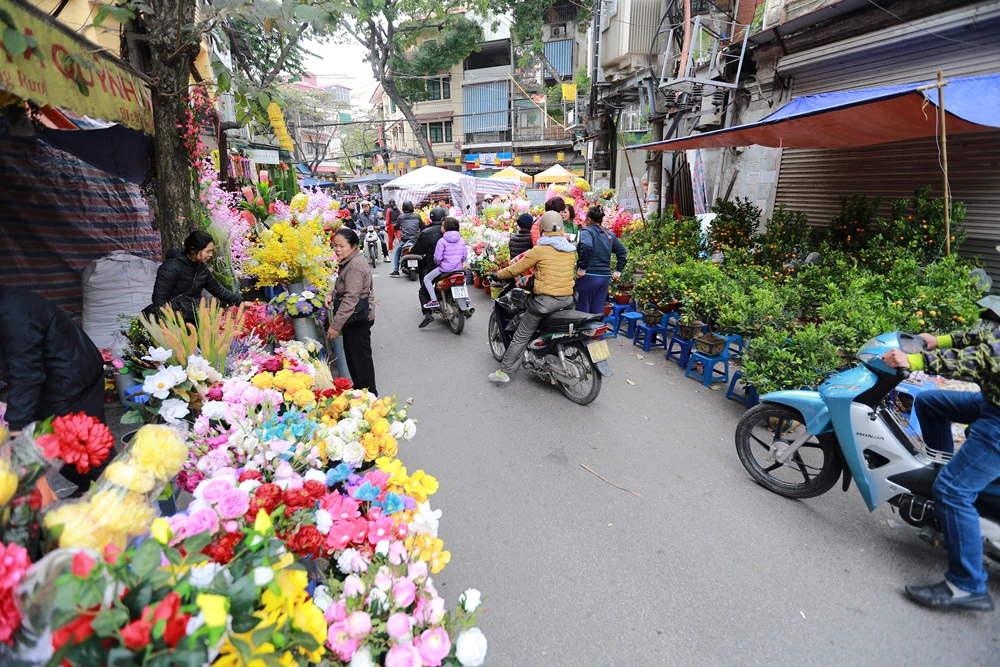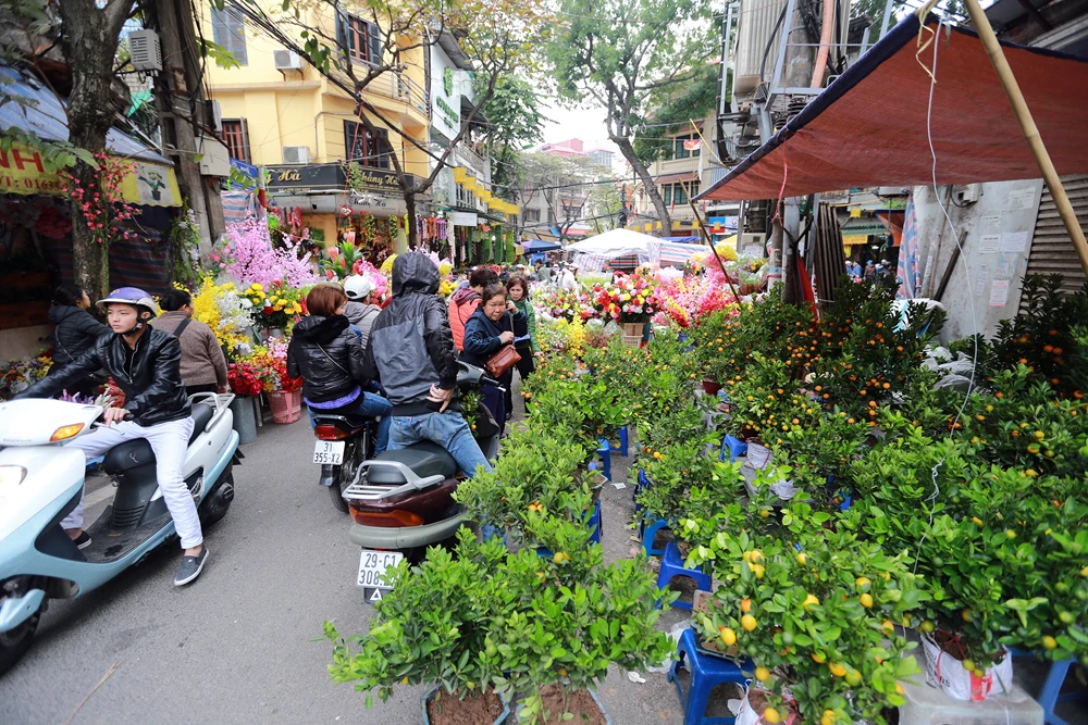 Nhiều con phố được bày bán đủ các chậu hoa cảnh phục vụ cho ngày Tết.