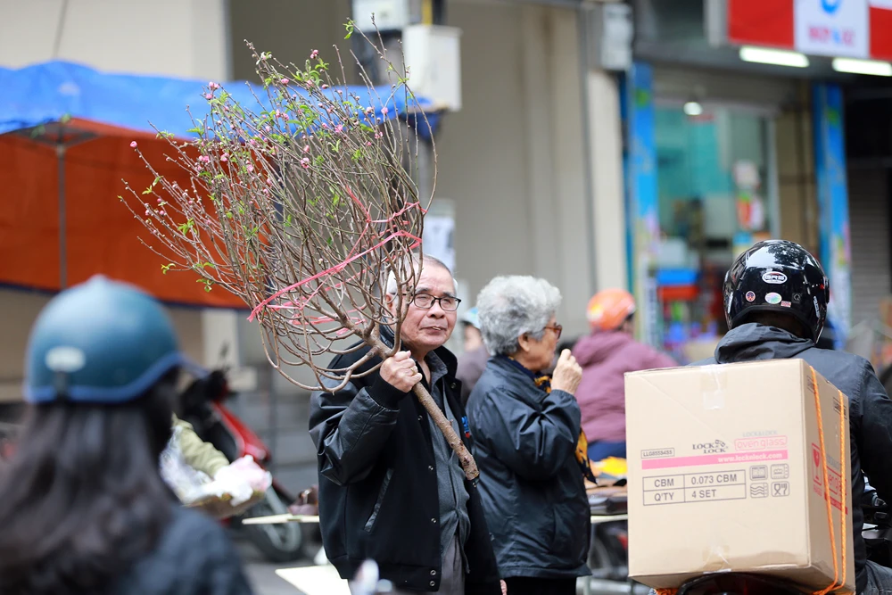 Cụ ông nhanh tay mua về cho mình một cành đào để đón Tết.
