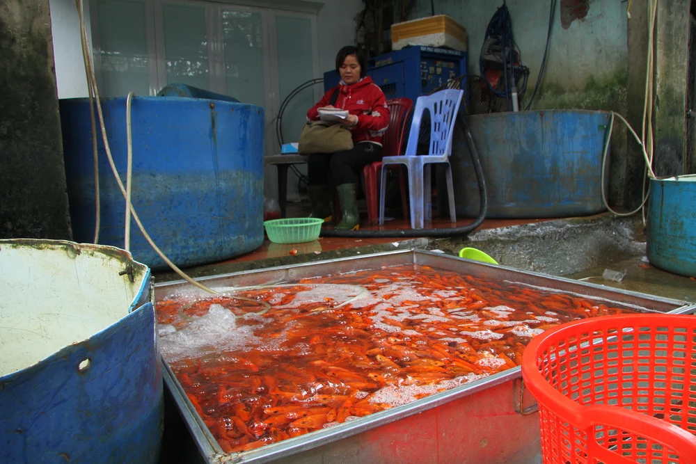 Hôm nay, các loại cá dùng để cúng ông Công, ông Táo cũng đã được bày bán.