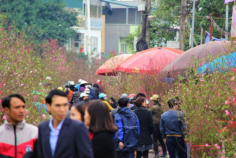 Hình ảnh 'rừng đào' trước chợ Quảng An (Hà Nội), mặc dù thời gian từ giờ đến Tết Nguyên đán còn khá dài nhưng nhiều người đã tìm về đây để chọn cho mình những gốc đào chơi Tết ưng ý nhất.