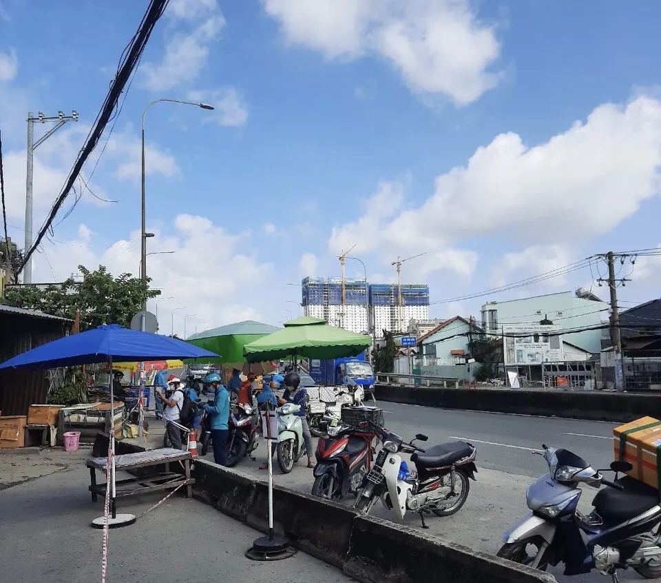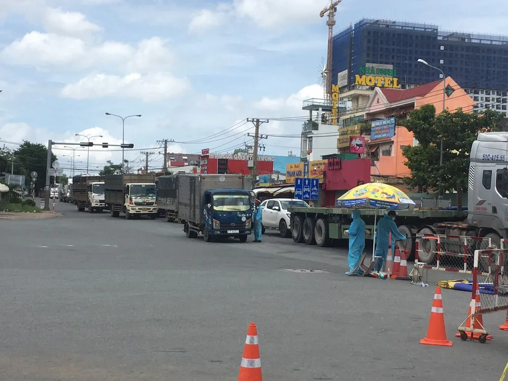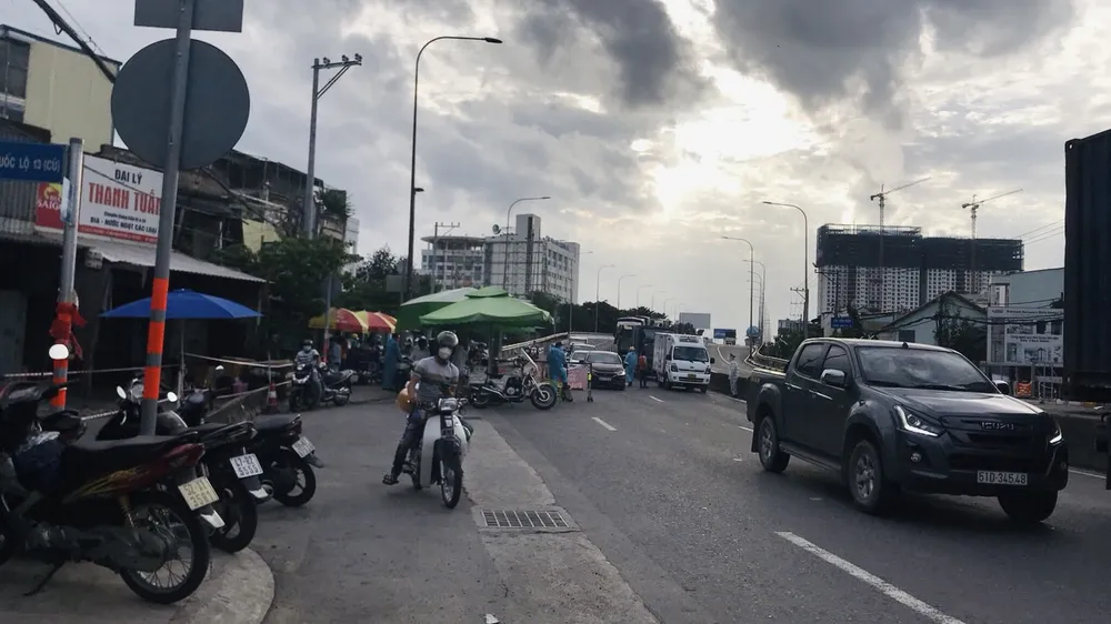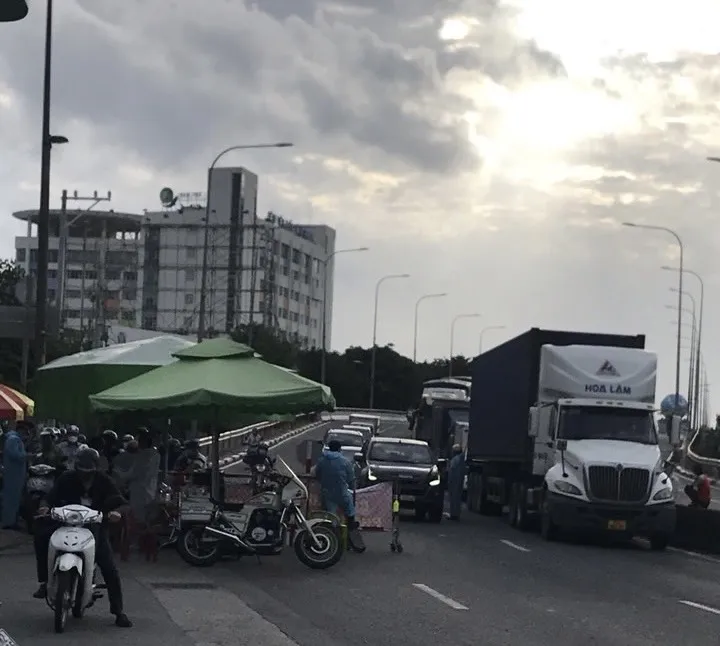 Chốt kiểm soát ở Quốc lộ 1A (cầu vượt Sóng Thần, giáp ranh Bình Dương) yêu cầu toàn bộ tài xế xe máy quay về và không cho qua chốt.