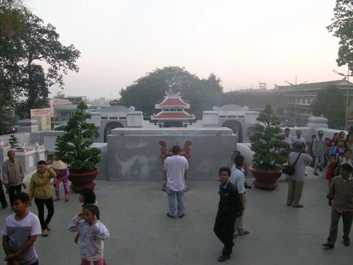 Khách hành hương cùng đội ngũ xe lôi trước cổng lăng