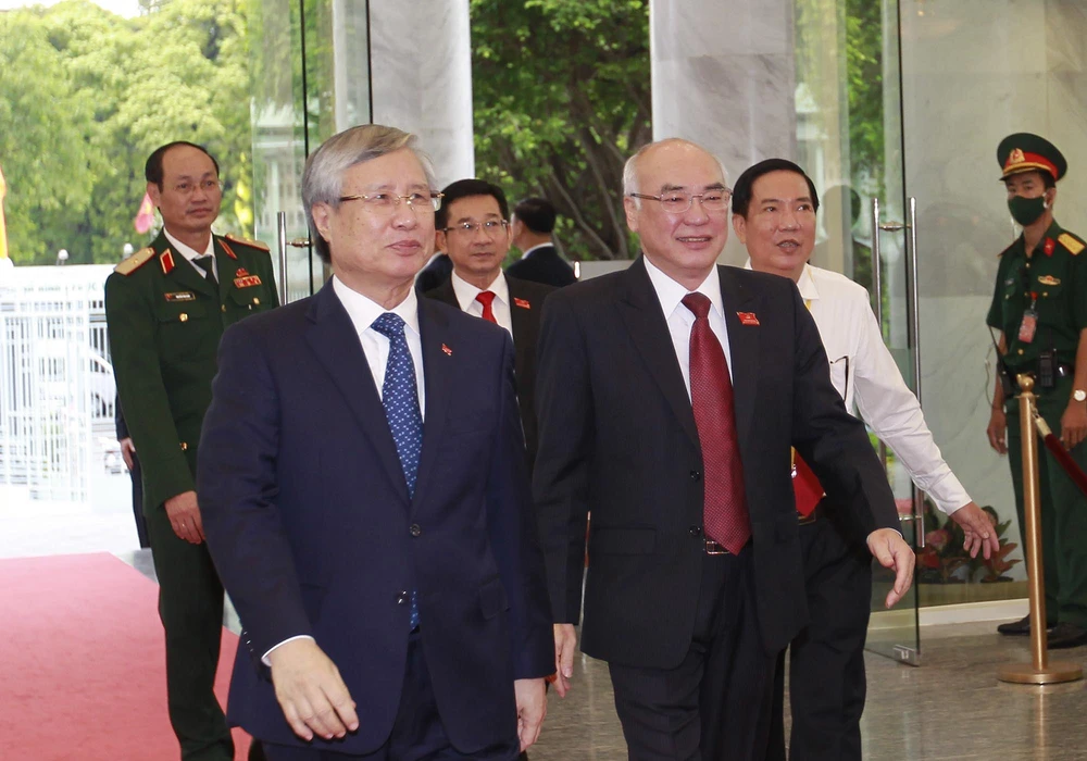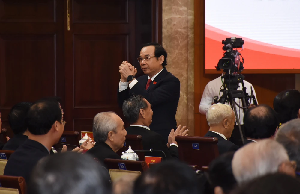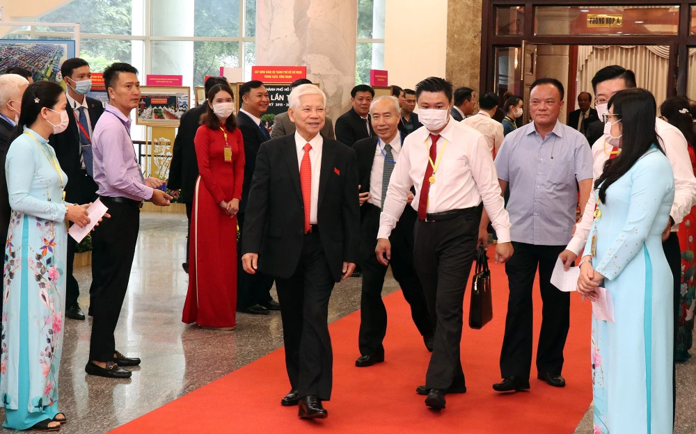 Ủy viên Bộ Chính trị, Thường trực Ban bí thư Trần Quốc Vượng đang tiến vào hội trường.