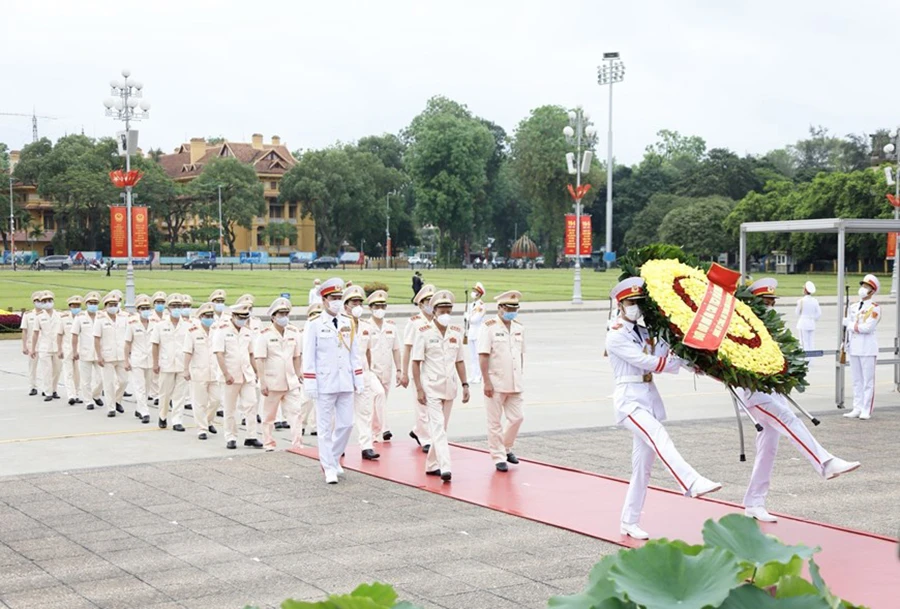 Đoàn đại biểu Đảng ủy Công an Trung ương và Bộ Công an tưởng niệm Chủ tịch Hồ Chí Minh.