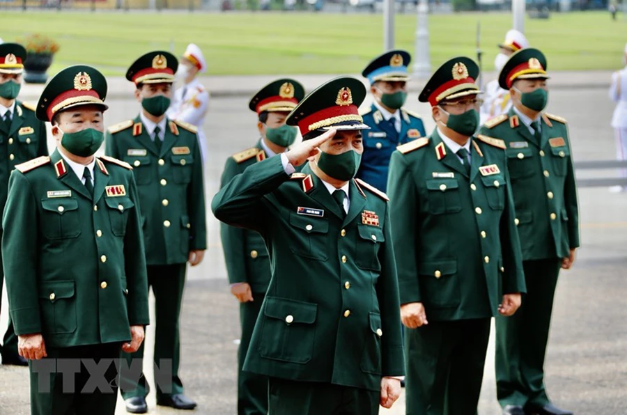 Đoàn đại biểu Quân ủy Trung ương và Bộ Quốc phòng tưởng niệm Chủ tịch Hồ Chí Minh.