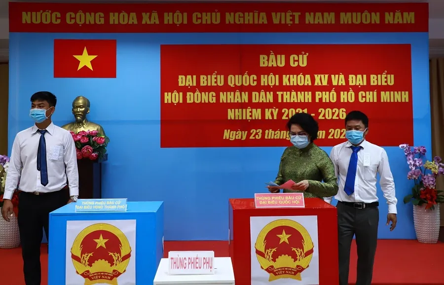 Trước đó ít phút, tại điểm bỏ phiếu ở trường THCS Đoàn Thị Điểm (quận 3), bà Nguyễn Thị Lệ, Phó Bí thư Thành ủy, Chủ tịch HĐND TP.HCM, cũng đã bỏ lá phiếu của mình để lựa chọn những người đủ đức, đủ tài làm đại biểu Quốc hội khóa XV và đại biểu HĐND TP.HCM nhiệm kỳ 2021-2025.